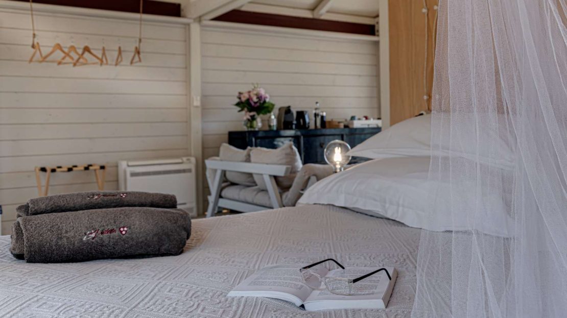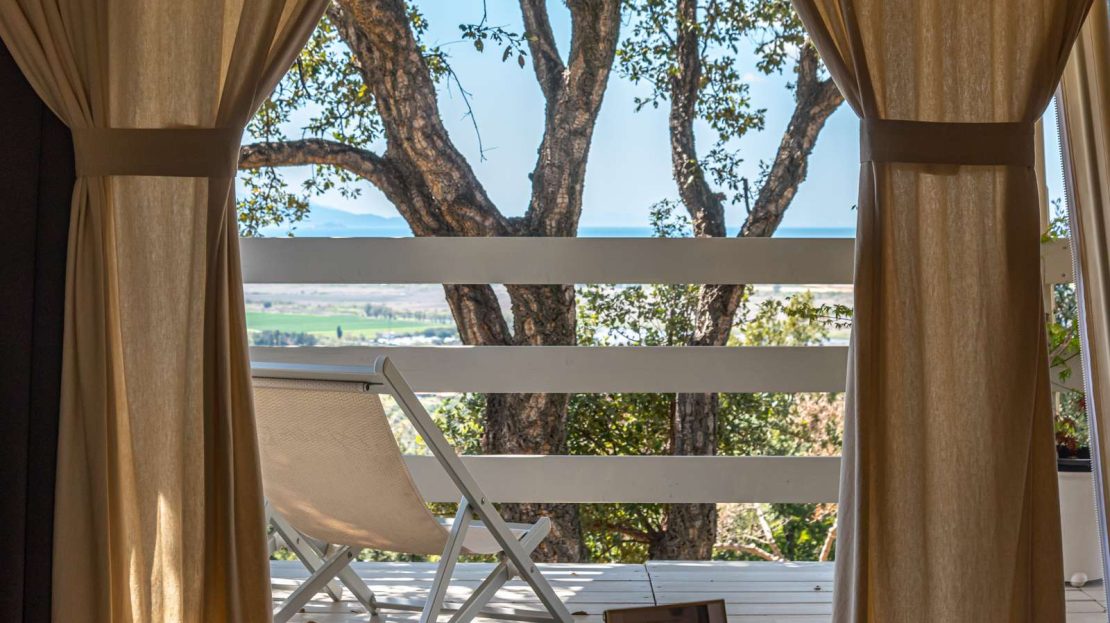 The owner of Be Vedetta Relais & Glamping is the descendant of a historic Scarlino family who has skillfully restored her old farm, a massive property that comprises a fifteen-hectare forest and an olive grove for the production of organic extra virgin olive oil. After many years as a manager of large companies and a hectic career around the world, Anna Barberini decided to return to Tuscany, to her Maremma, to design a structure featuring various solutions that offer exclusive charm and tell the story of those places so connected to memory, emotions, characters and objects of the family. A real leitmotif that imbues all the spaces and style of the facility. The owner’s touch, tied to her many stays abroad, is evident in the details, designed to shape the rooms with the goal of maximum comfort.
